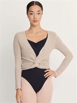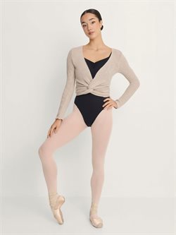 Fin langærmet slå om balletstrik i smuk beige farve fra Intermezzo. Lavet i 50% bomuld/50%polyester. Perfekt til opvarmning og før og efter ballettimen.