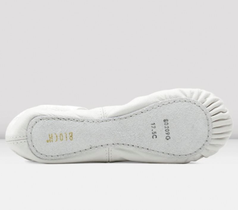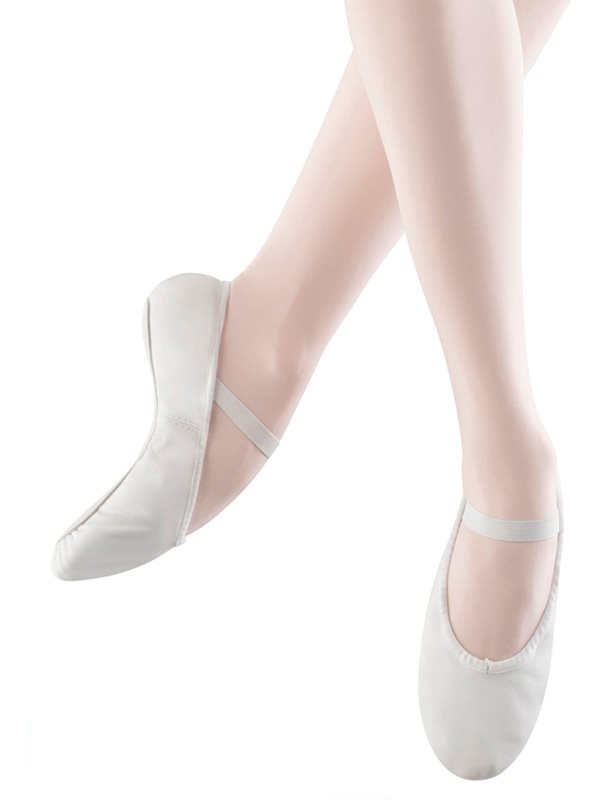 Arise Bloch er en blød balletsko til begynder i hvid skind med fuldsål til børn og voksne.
