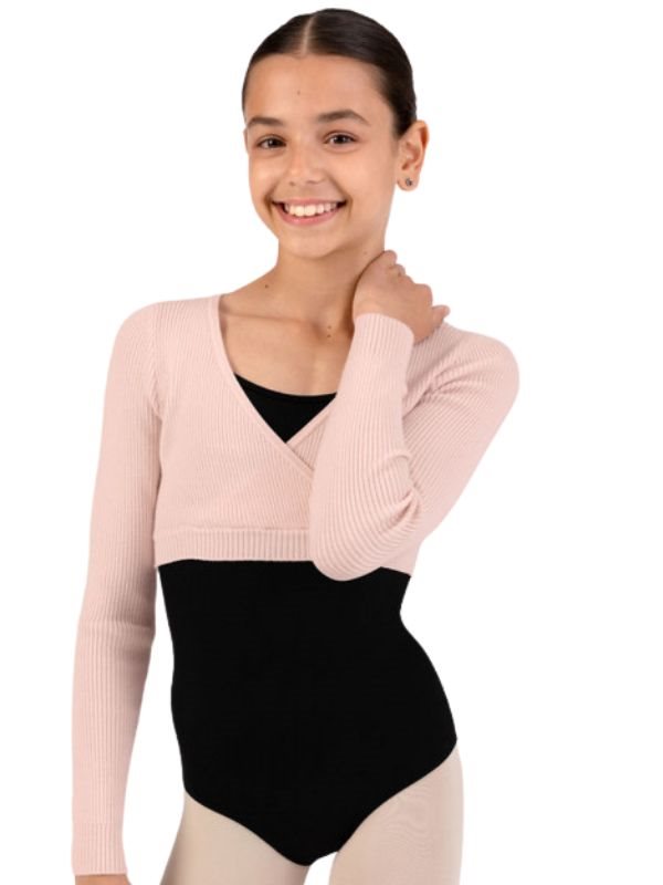 Super blød og elegant strik i rosa til børn fra Bloch. Strikken er lavet i det lækreste ribbede materiale, som gør gør strikken strækbar og sørger for at den sidder flot på enhver krop. Den er det signet så med kryds foran, så det ligner en slå-om strik, men slipper for besværet. Denne strik er ideel til kolde dansestunder, til opvarmningen eller bare til hverdagen.