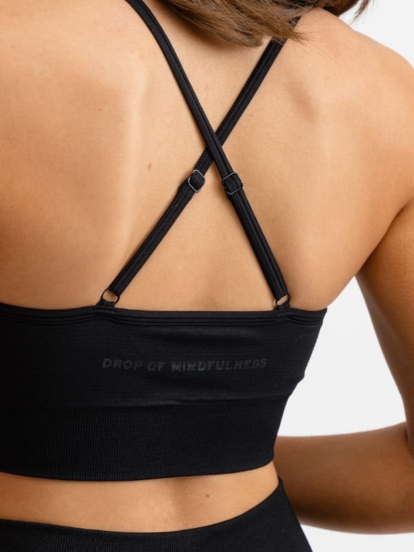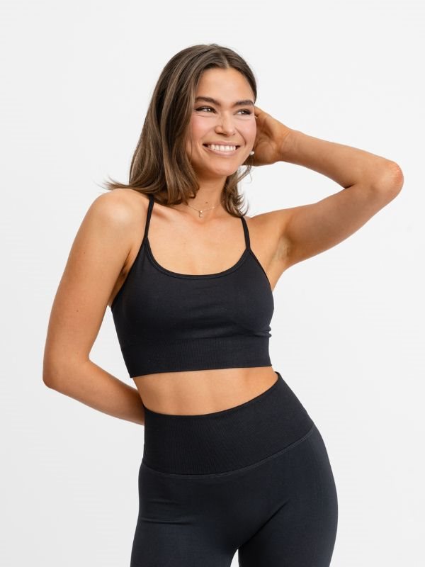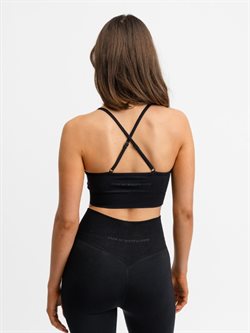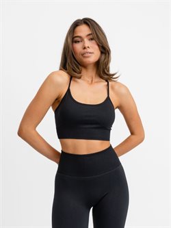 Signature bh top i sort. Skøn top med justerbare stropper der krydser på ryggen. Den har aftagelige puder og et rib stykke under brystet for bedre støtte og behagelighed.