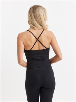 Toppen indeholder en indbygget bh med udtagelige indlæg, der sikrer både støtte og tilpasning, perfekt til både træningspasset og som en elegant del af din hverdagsgarderobe. Fremstillet af 88% polyester og 12% elastan, garanterer den en strækbar pasform, der omfavner din krop og giver dig frihed til ubesværet bevægelse, uanset om din dag byder på aktivitet eller afslapning.