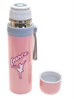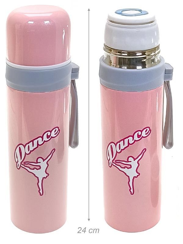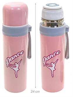 Termoflaske i pink af rustfrit stål. Kan rumme 500 ml kold eller varm væske. Den har håndtag. Holder temperaturen varm eller kold i lang tid (24 timer) - 24 cm høj