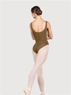 Bloch Ava mandelfarvet balletdragt med brede stropper, flot front og fin dyb rund ryg