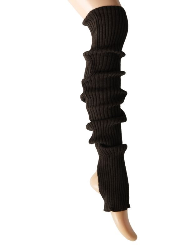 Seré ribstrikket benvarmere i uld i mørkebrun. Lækker blød Merino uld med hul til hælen.