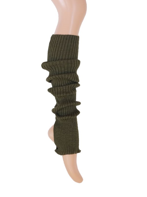 Seré ribstrikket benvarmere i uld i olivengrøn. Lækker blød Merino uld med hul til hælen. Går lige op over knæet.