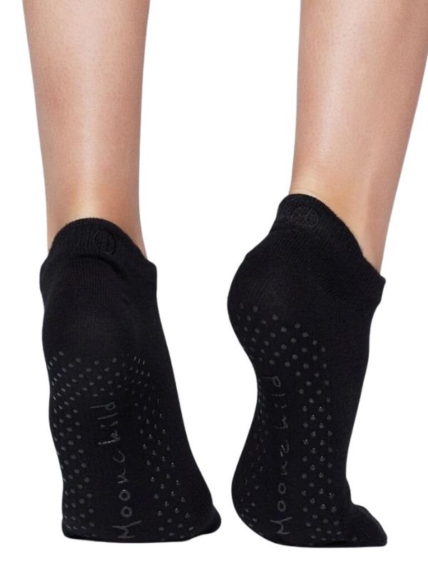 Toe socks fra Moonchild i Onyx Black med lukket fem tå-design og silikone dutter står du nemt kan stå fast under yogatimen.