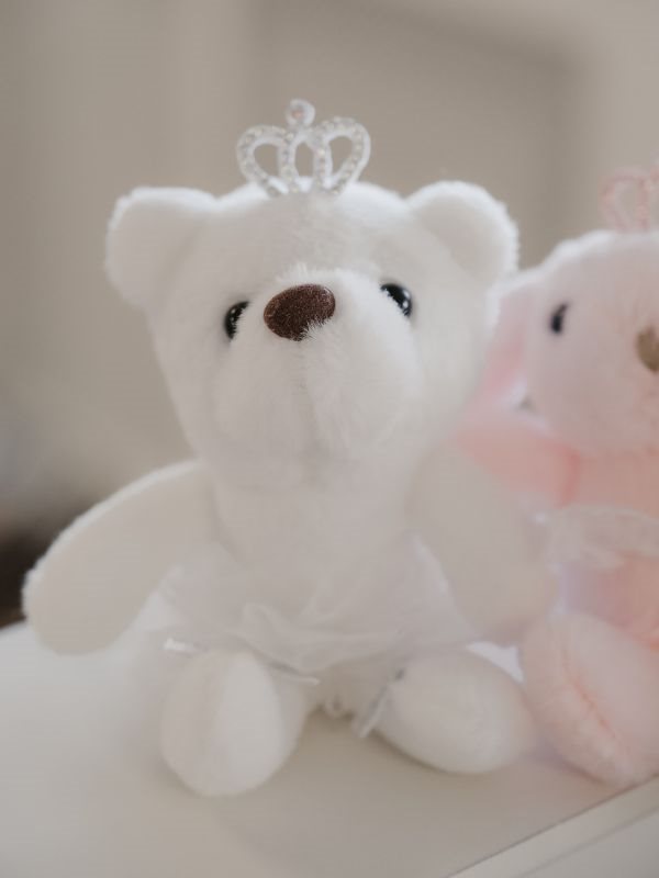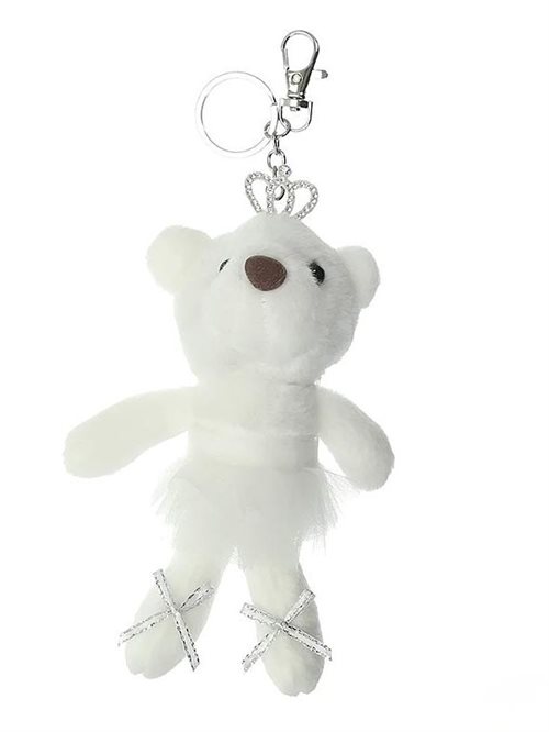 Den sødeste hvide ballet bamse nøglering med tutu skørt, diadem og rhinsten
