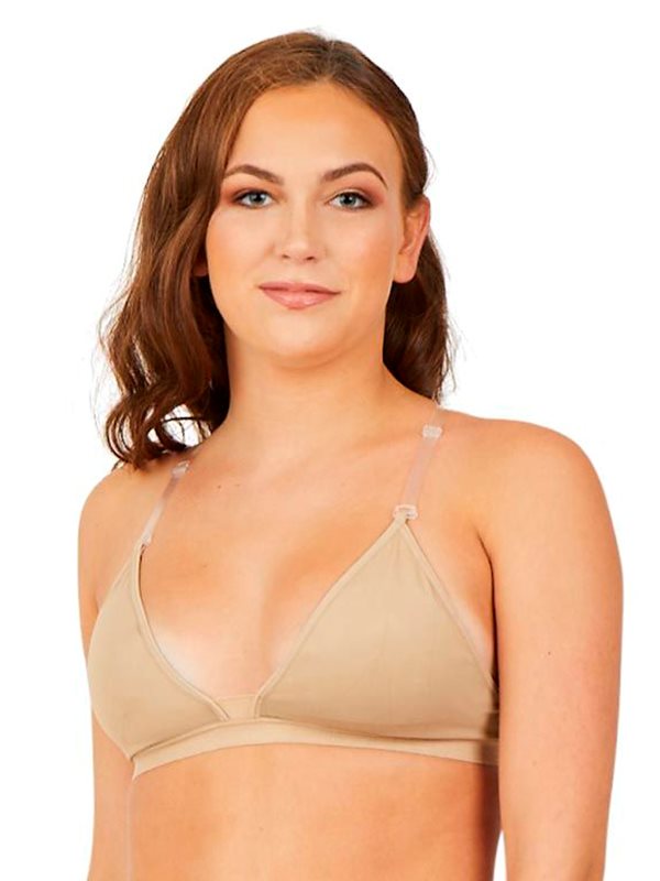Capezio trekants bh top med klare skulderstropper og silikone strop over ryggen der giver støtte på en diskret måde - perfekt til dybe udskæringer både for og bag til