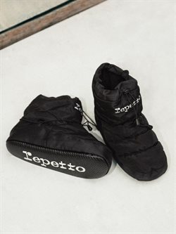 Repetto sorte bløde og behagelige warmup boots med logo. Perfekt til at starte balletimen op med, plus at holde fødderne varme mellem træning og opvisning. Kan bruges over balletsko - både til piger og drenge