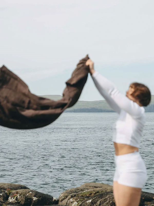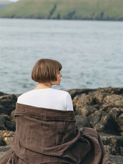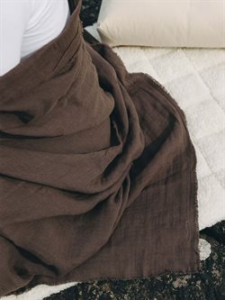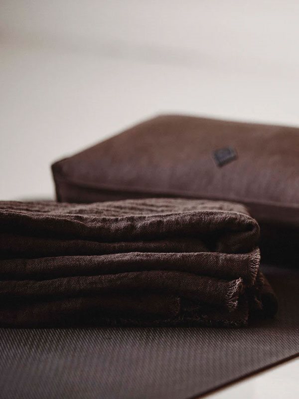 Dette alsidige tæppe eller sjal fra Simple Days er perfekt til yoga og afslapning. Det mørkebrune yogasjal er lavet af naturlige materialer, blandingen af bomuld og hør gør det blødt og lækkert at have på.