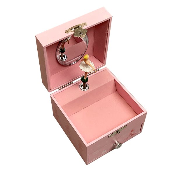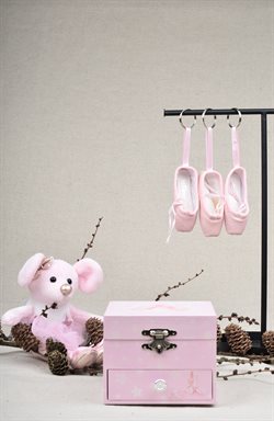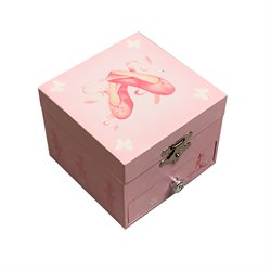 Smykkeskrin med spejl og lille skuffe fra franske Trousselier i sød rosa farve med balletsko.