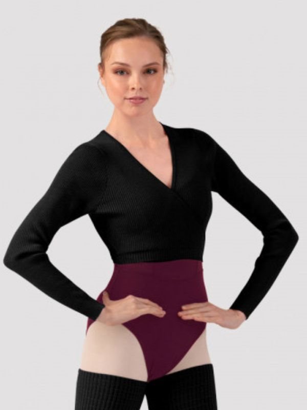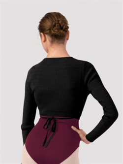 Super blød og elegant slå-om strik i sort fra Bloch. Strikken er lavet i det lækreste ribbede materiale, som gør gør strikken strækbar og sørger for at den sidder flot på enhver krop. Den er designet med to snorre, der skal bindes på rykken, så strikken er justerbar og man selv kan bestemme stramt den sidder. Denne slå-om strik er ideel til kolde dansestunder, til opvarmningen eller bare til hverdagen.